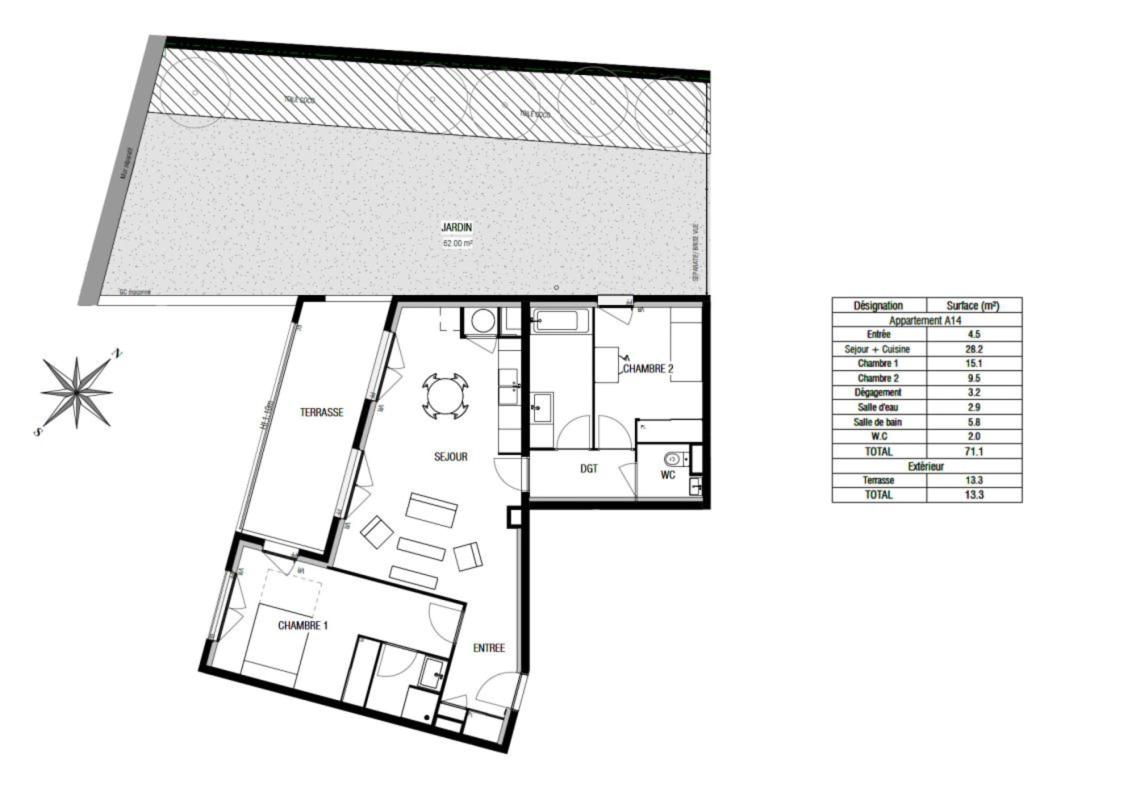 * LOGEMENT : Appartement T3 de 71.10 m² offrant un espace de vie confortable, composé d'un séjour cuisine de 28 m², de 2 chambres de 15 et 9 m², d'une salle de bains et d'un wc séparé.