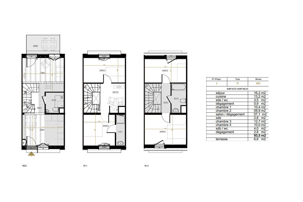 *LOGEMENT : Découvrez cet appartement de 5 pièces en triplex de 93,5 m². Il se compose d'un séjour de 16 m², d'une cuisine de 13 m², d'une salle d'eau avec WC, de trois chambres, d'un salon, d'une seconde salle d'eau, d'une salle de bains avec WC ainsi que de plusieurs espaces de dégagement. Une terrasse de 6,6 m² vient compléter ce bien.