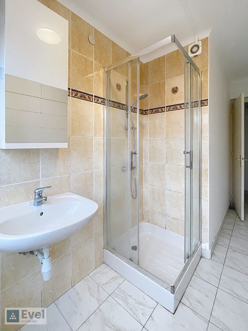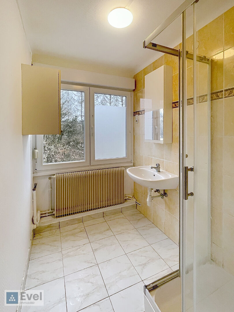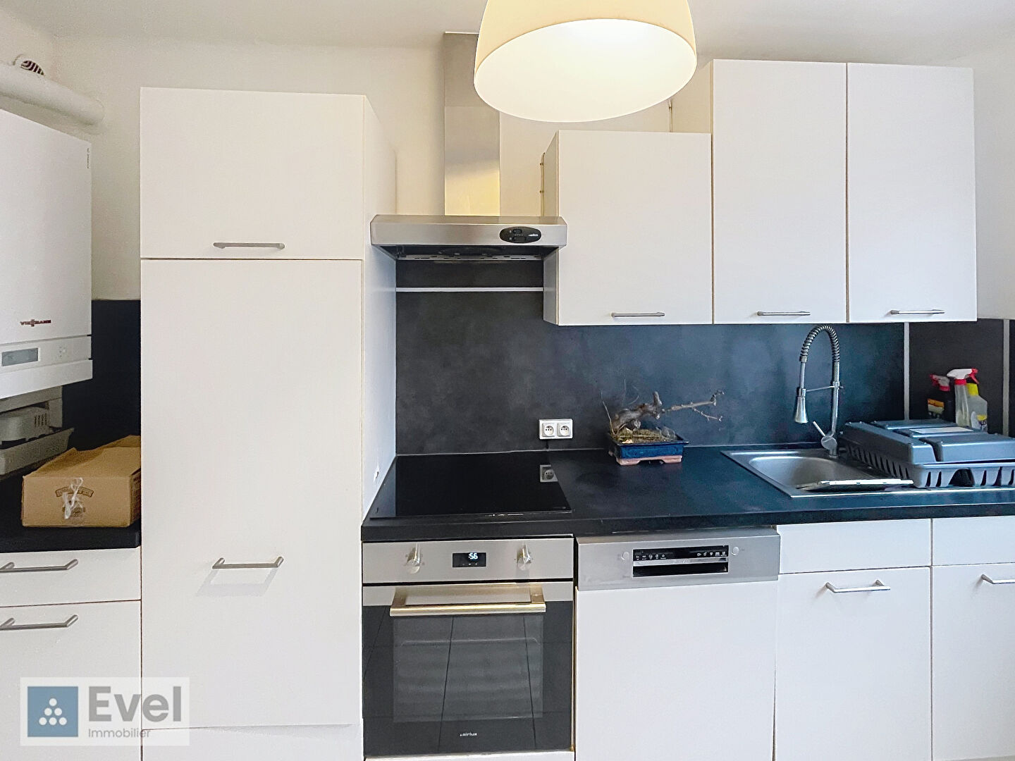 Appartement type F2 de 44 m² au rez-de-chaussée surélevé comprenant : entrée, cuisine toute équipée (four, plaque de cuisson, hotte, réfrigérateur, lave vaisselle), séjour, 1 chambre avec placard, salle de bains avec douche et WC séparé.