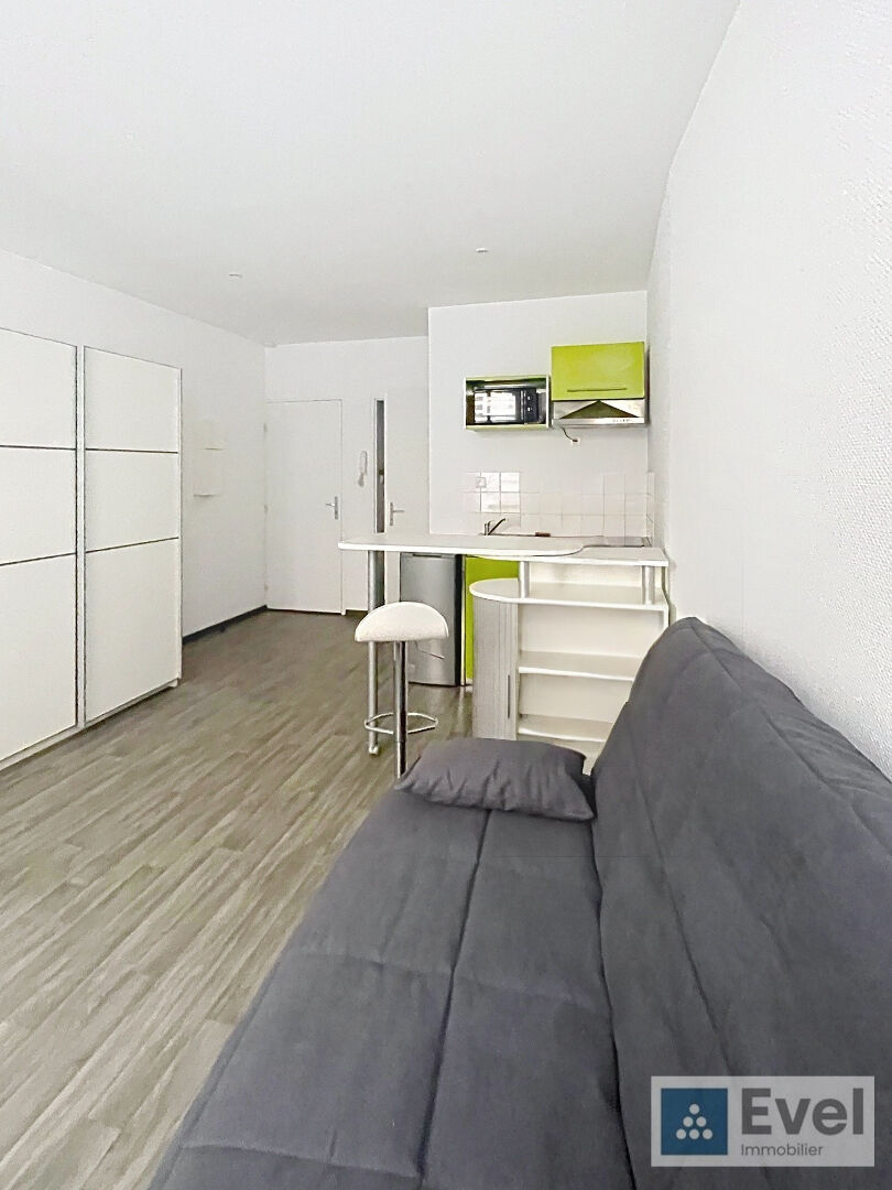 Agréable studio meublé rénové situé au 1er étage, composé d'une entrée donnant sur la pièce principale, un coin cuisine équipée, une salle de bains avec toilettes.