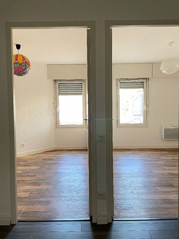 A louer. En plein centre ville, à découvrir cet appartement de 3 pièces au 2ème étage avec ascenseur comprenant une entrée avec placard, séjour, cuisine équipée, 2 chambres, salle de bains équipée, débarras.