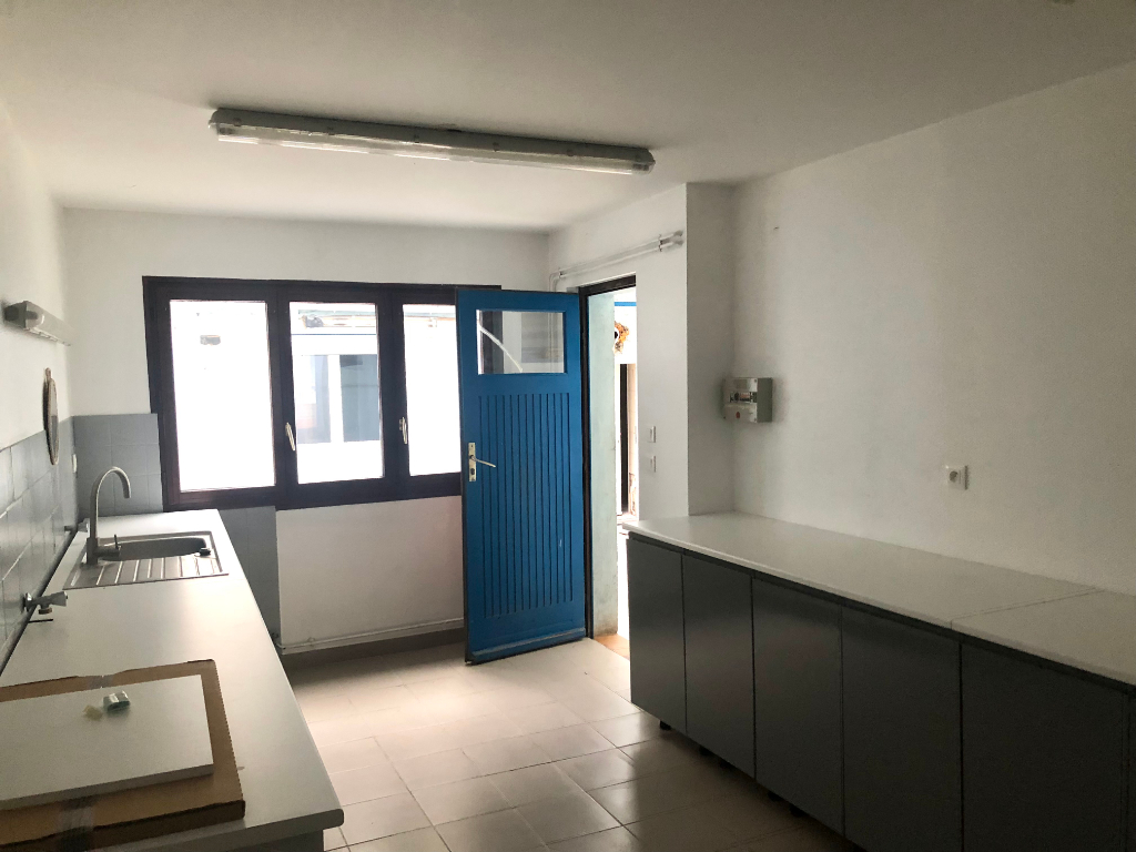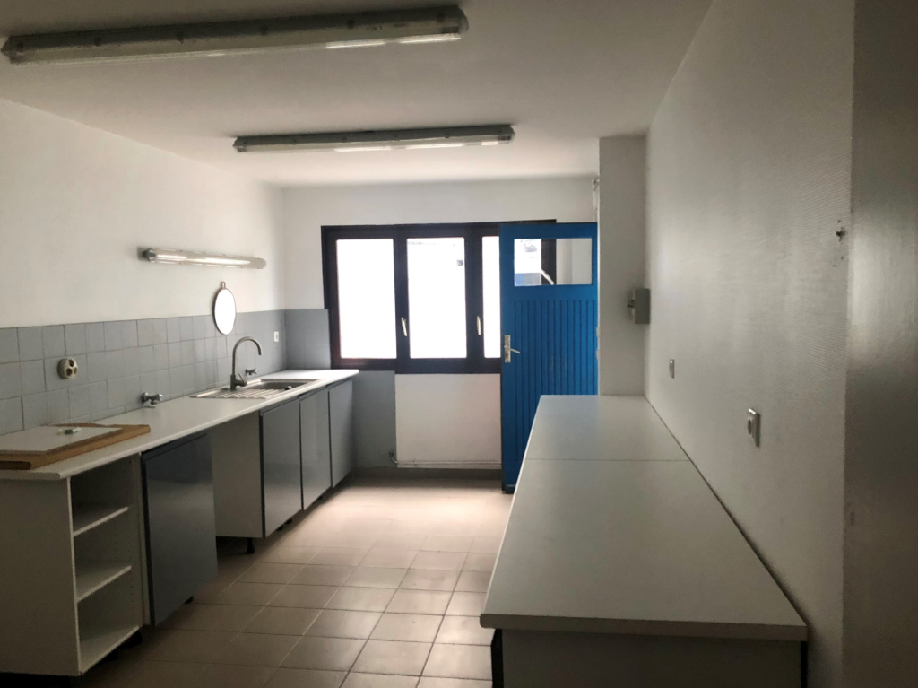 Local commercial situé en rez-de-chaussée, comprenant : une vaste pièce principale sur l'avant, un sanitaire hommes/femmes, une cour, une salle d'eau avec douche, une cuisine.