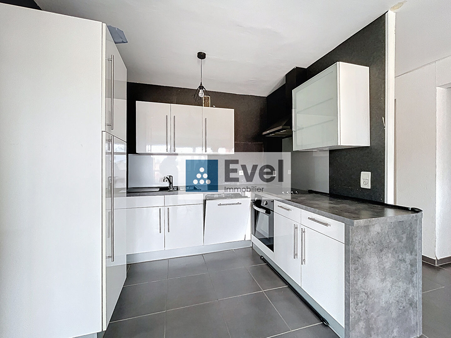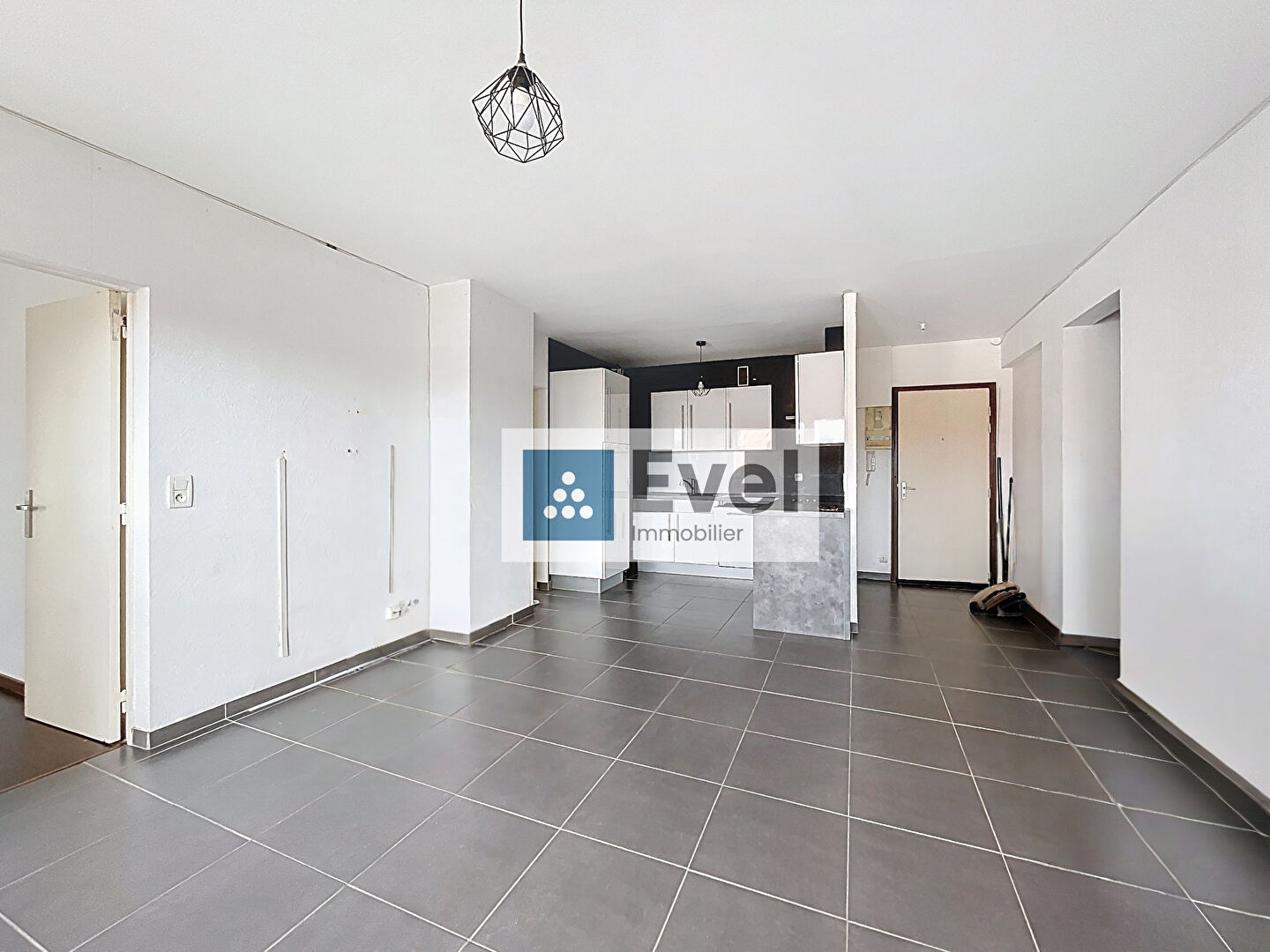 L'appartement 3 pièces dispose d'une cuisine équipée ouverte sur le séjour, deux chambres, une buanderie, une salle d'eau, un toilette séparé, un balcon.