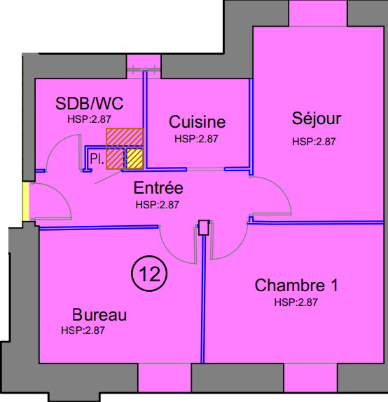 Il se compose d'une entrée avec placard desservant une salle de bains avec WC, une cuisine indépendante, un séjour et deux chambres. Chauffage individuel gaz.