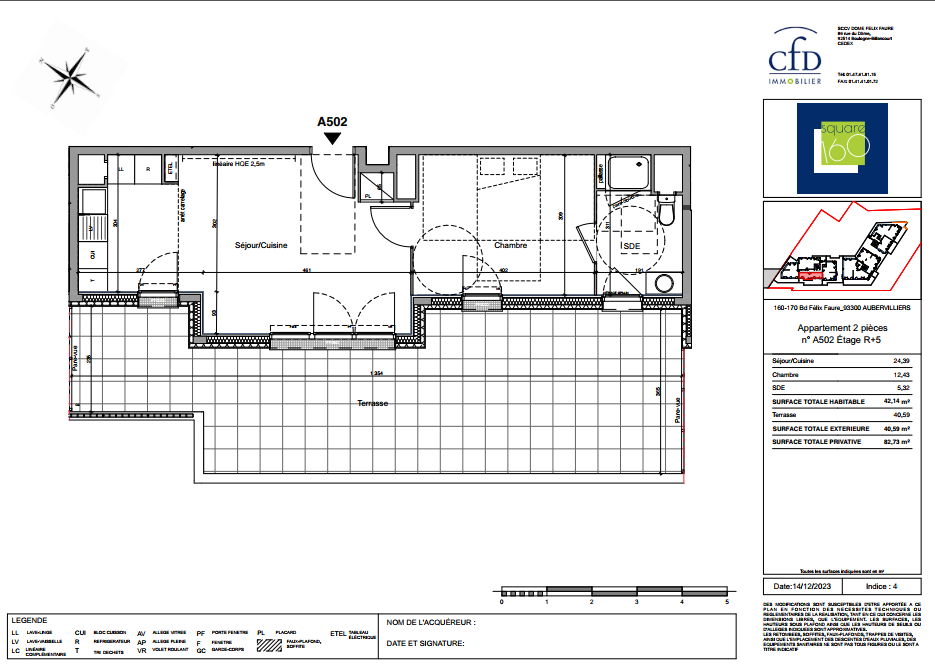 Venez découvrir ce grand T2 de 42.98 m² situé au 5ème étage d'un immeuble neuf, composé d'un séjour, d'une chambre, cuisine aménagée, terrasse de 40.59 m², une salle d'eau avec WC intégré.