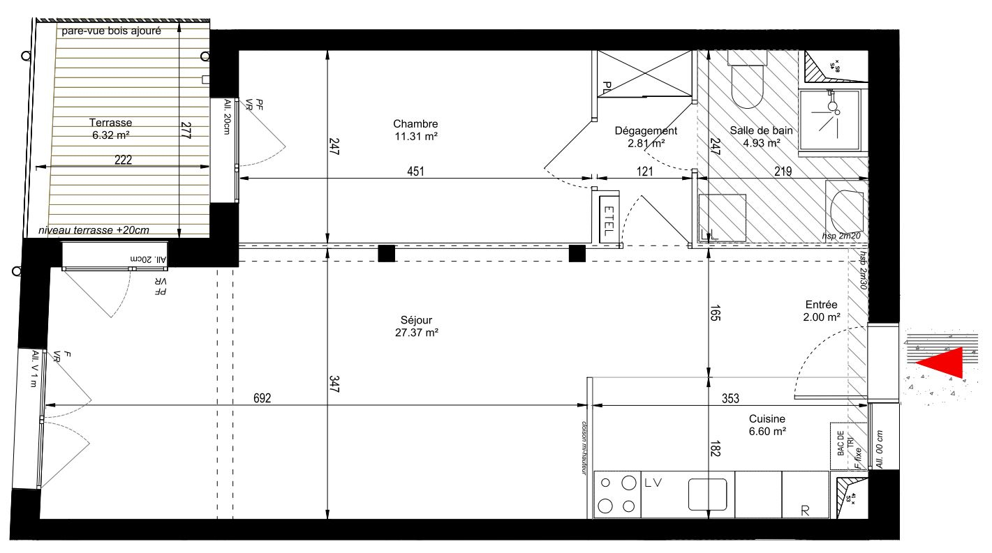 Dans un immeuble neuf, venez découvrir ce beau T2, composé d'un séjour cuisine aménagée et semi-équipée donnant sur un balcon d'environ 6 m², un dégagement qui dessert la salle d'eau avec WC ainsi qu'une chambre spacieuse d'environs 12m².