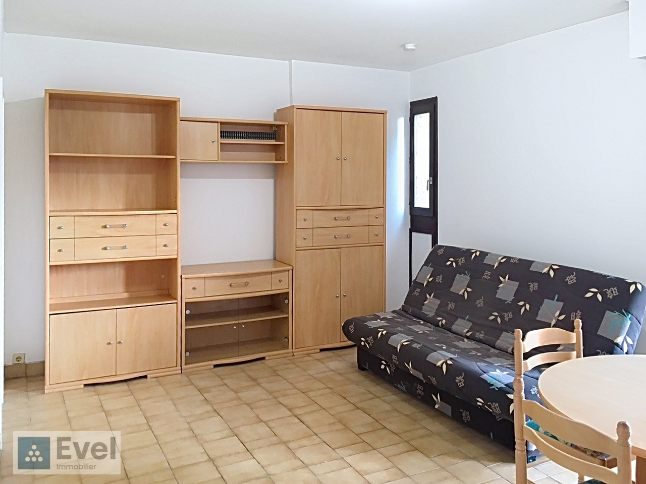 Studio meublé de 28,48m² comprenant une cuisine équipée, une pièce principale, une salle de bains avec wc.