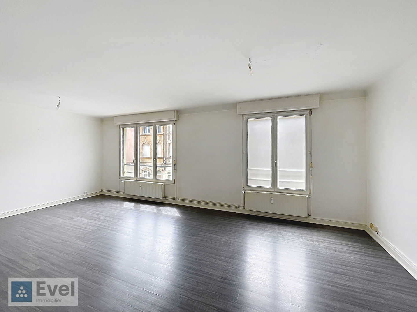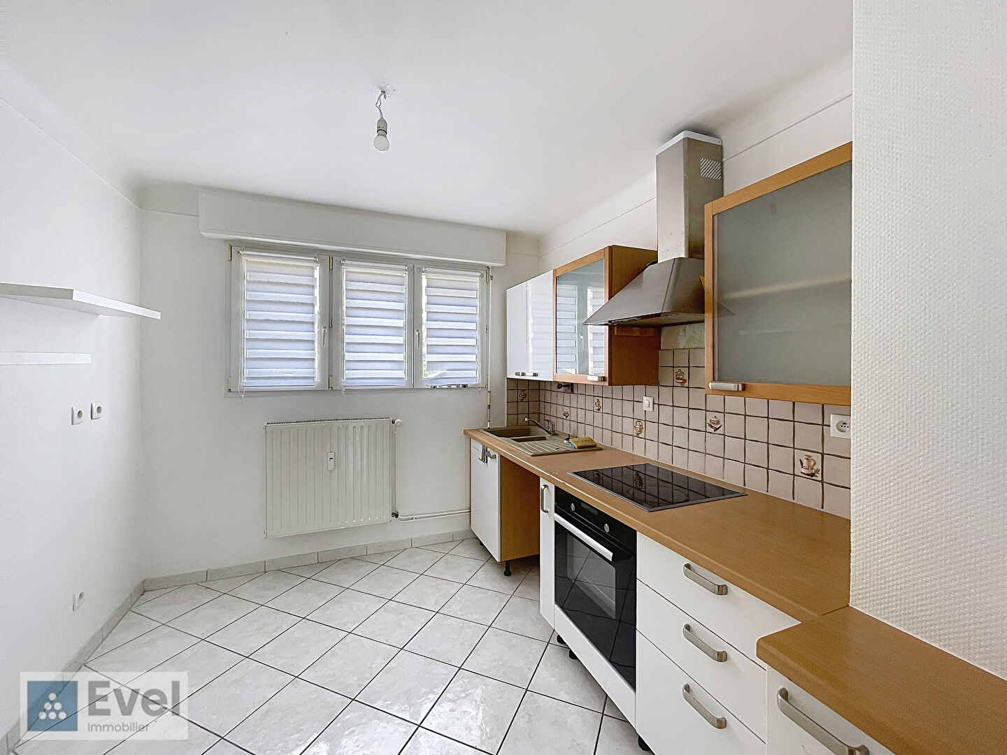 Appartement type F4 de 81m² au 1er étage comprenant : une entrée, une cuisine équipée (four, plaque de cuisson, hotte), beau séjour, 2 chambres, salle de bains avec baignoire et douche, une buanderie, WC séparé.