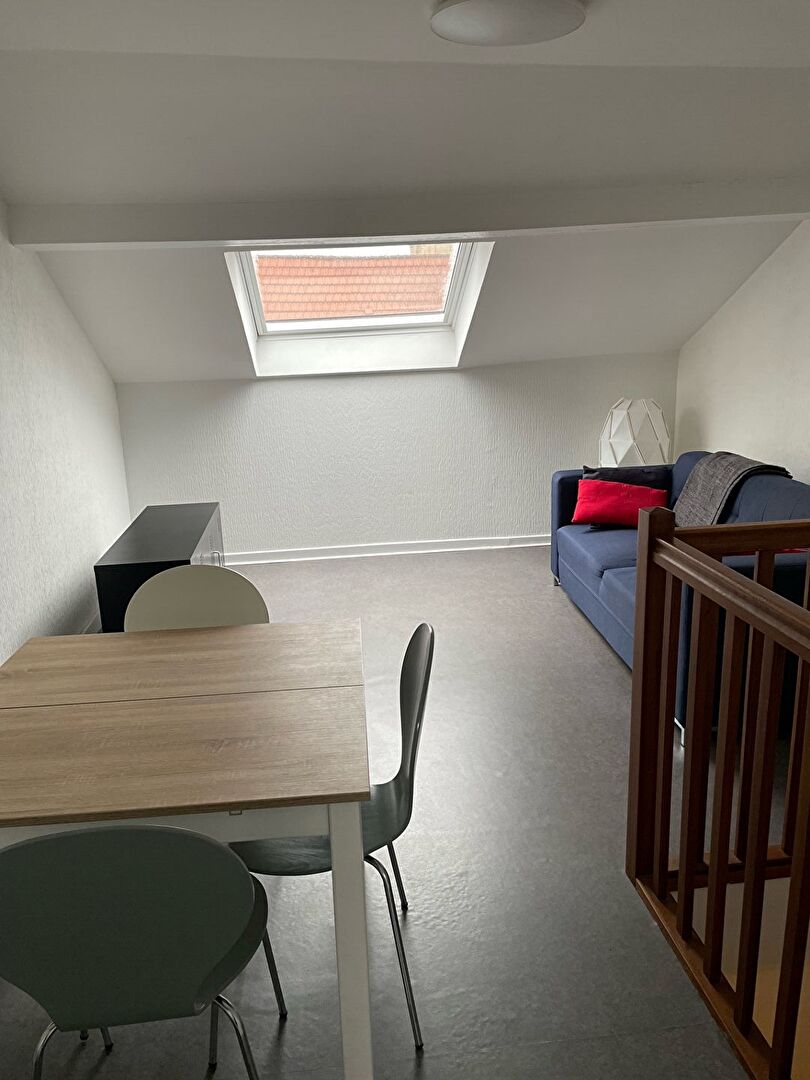 Appartement meublé de type F3 de 58.70 m² en duplex, au 4ème et dernier étage (sans ascenseur) comprenant un hall, 2 chambres, une petite pièce bureau , une salle de bains et un wc séparé, à l'étage : le séjour et la cuisine équipée.