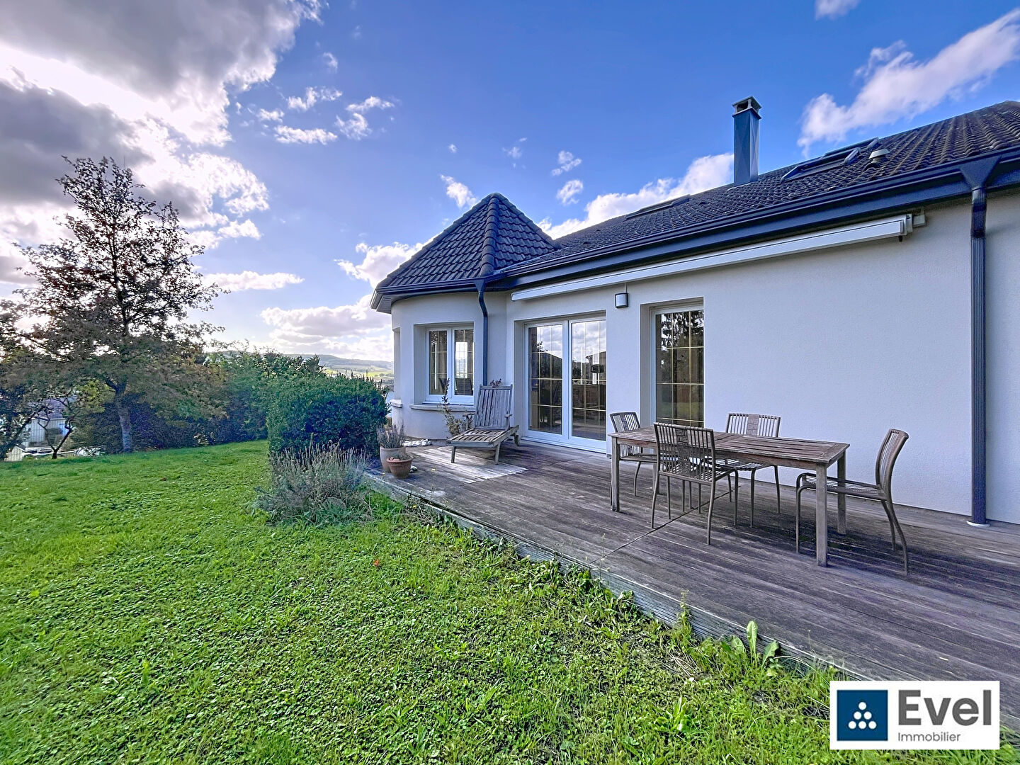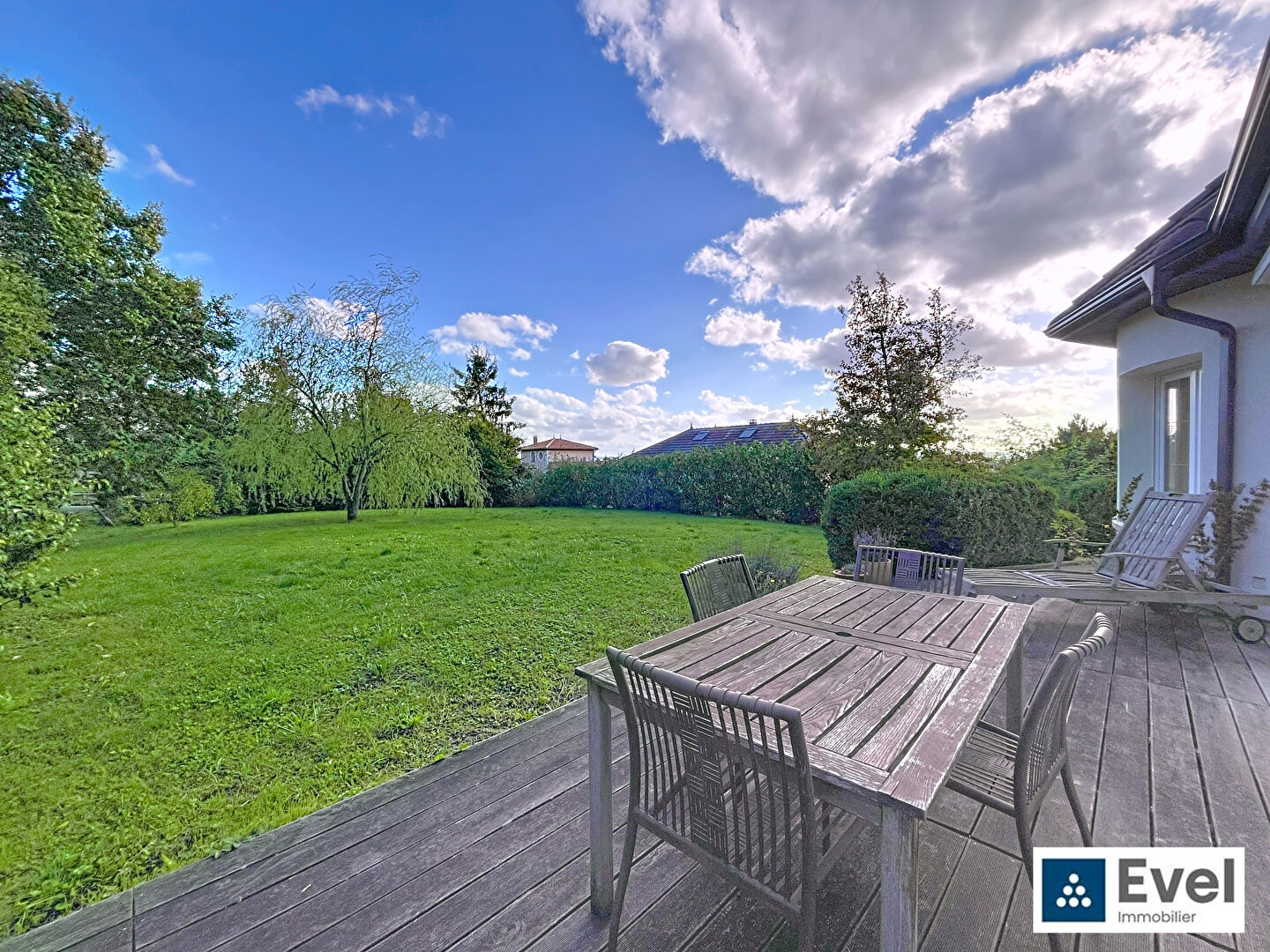 De ces deux pièces clés, cuisine et séjour, vous accèderez aux extérieurs soignés et arborés ainsi qu'à la terrasse sur laquelle vous pourrez profiter des journées ensoleillées, lire un bon livre ou inviter des amis pour des moments inoubliables. Grand air et grand calme sont au programme.