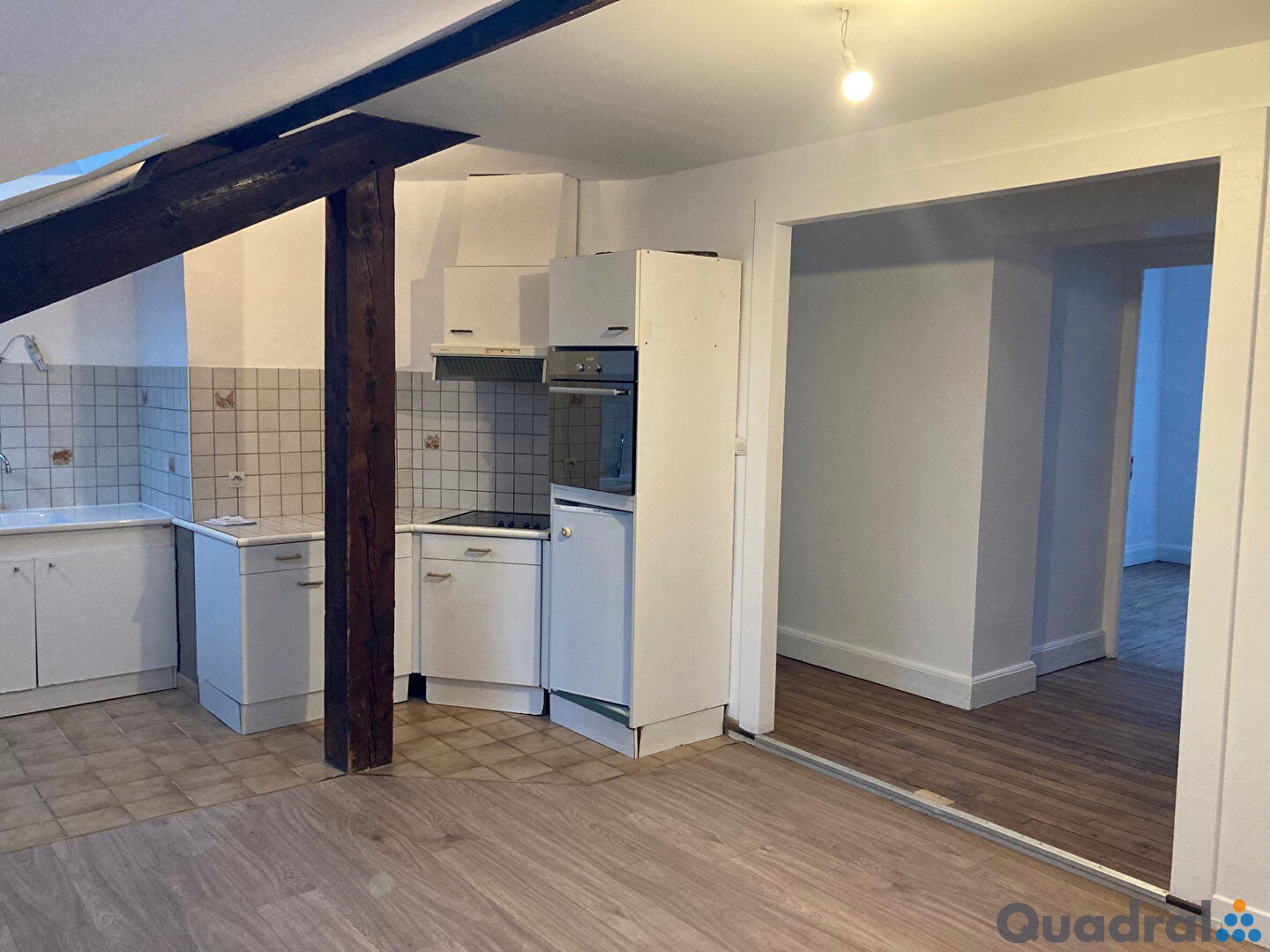 LOCATION - NANCY - APPARTEMENT 3 PIECES - Secteur COMMANDERIE/GARE. Rue de la commanderie. Dans immeuble de caractère, appartement au dernier étage, comprenant : une entrée couloir, un séjour ouvert sur cuisine équipée (four, plaques, hottes, frigo, rangements), 2 chambres avec placards, une salle de douche et un WC séparé. un espace grenier. Chauffage individuel électrique. Contact: 03.83.35.49.38