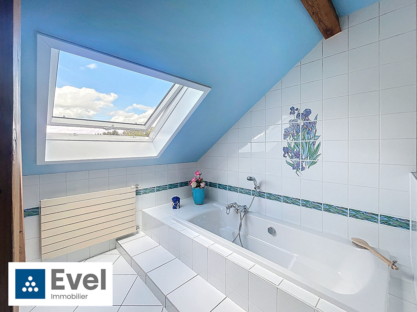 Les combles aménagés abritent une seconde salle de bains avec douche et baignoire, ainsi qu'un espace permettant la création d'une quatrième chambre au besoin.