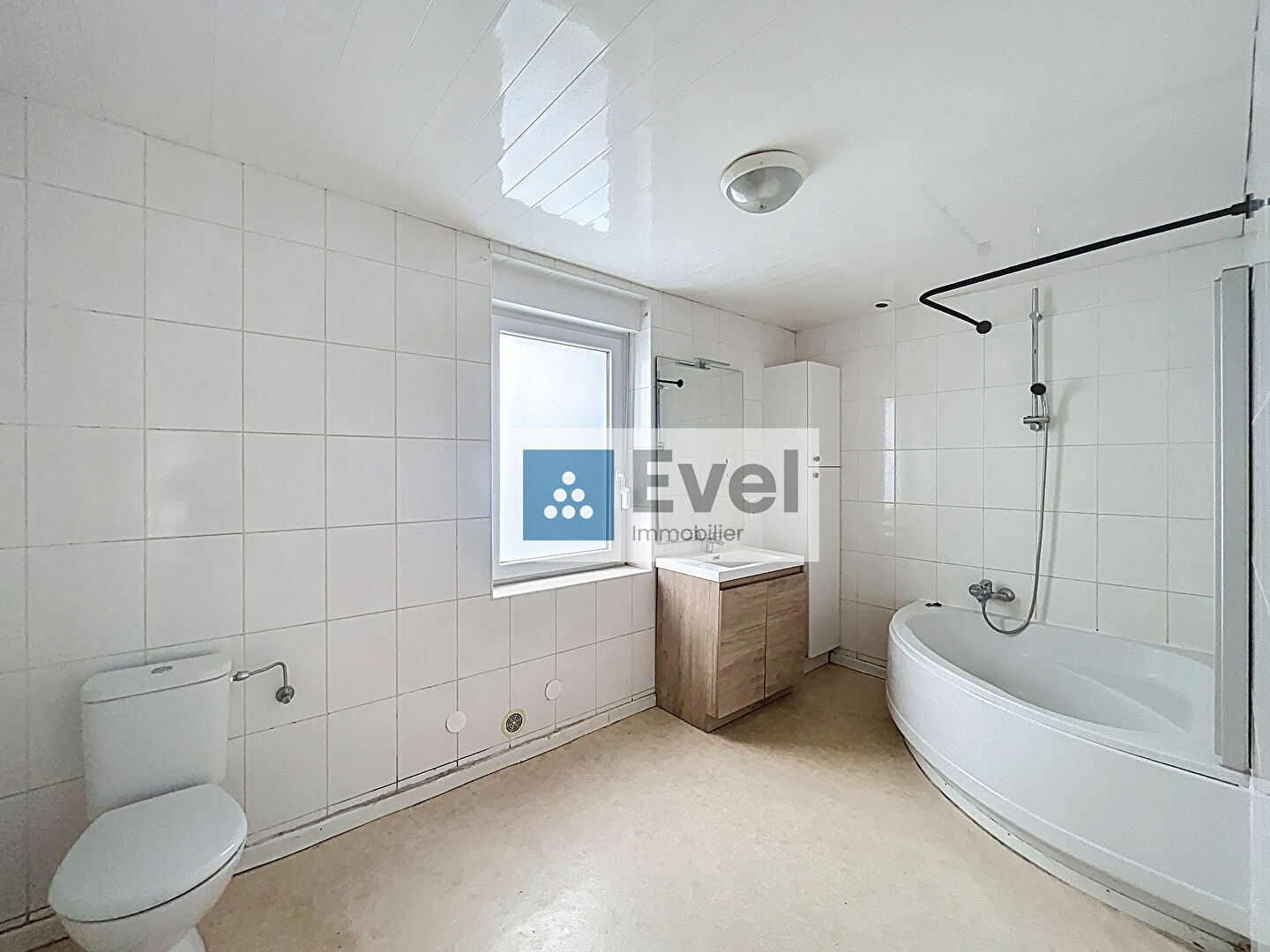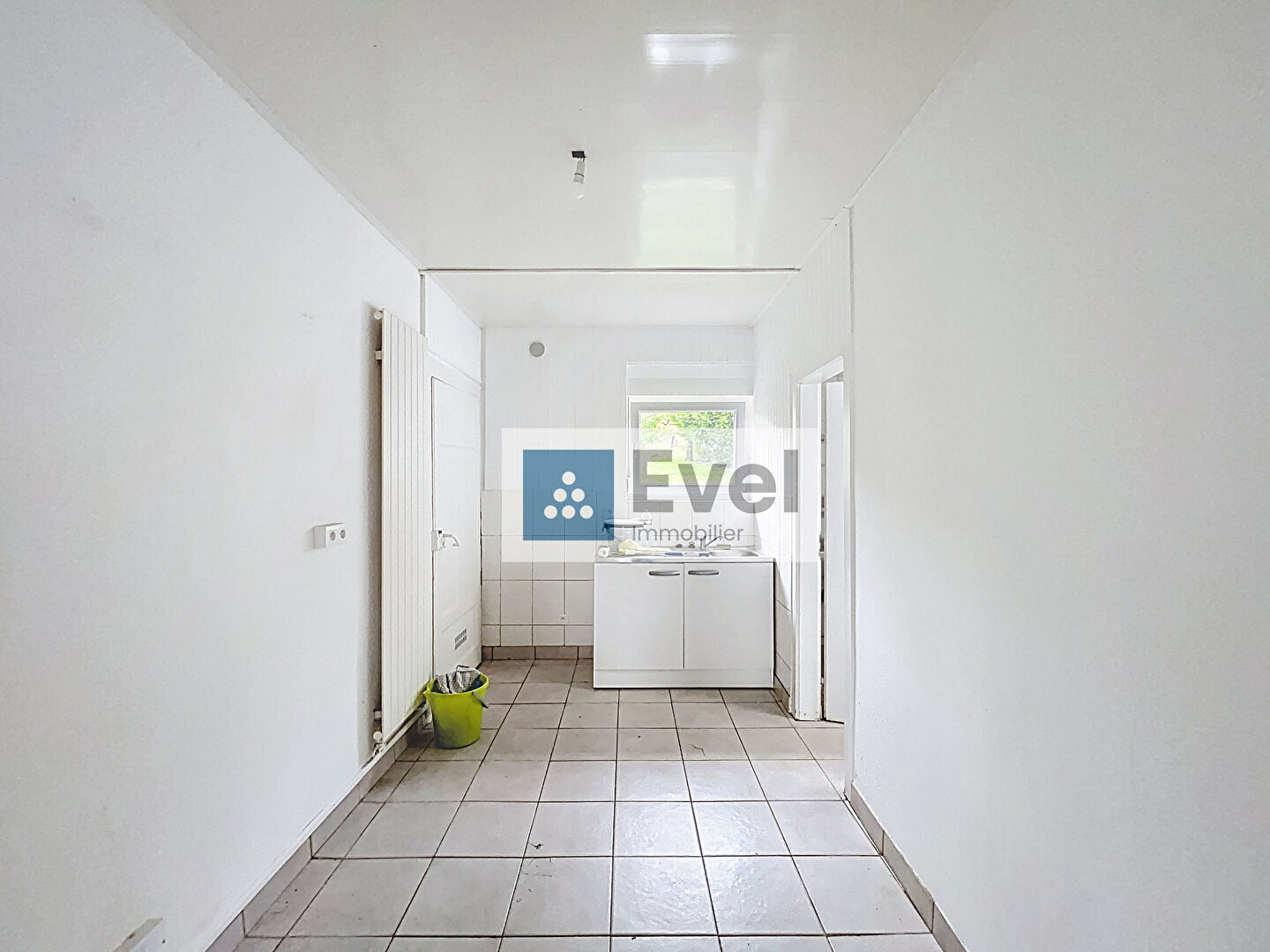 Au rez de Chaussée : Une entrée, un salon, une salle à manger, une troisième pièce pouvant servir de chambre ou bureau), une cuisine à aménager (uniquement meuble évier) et un WC séparé avec coin buanderie.