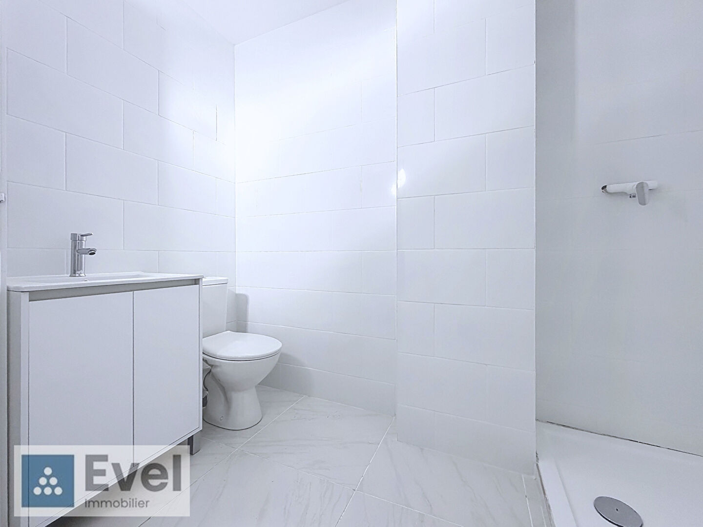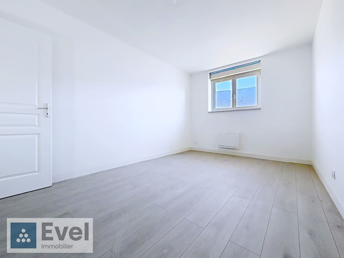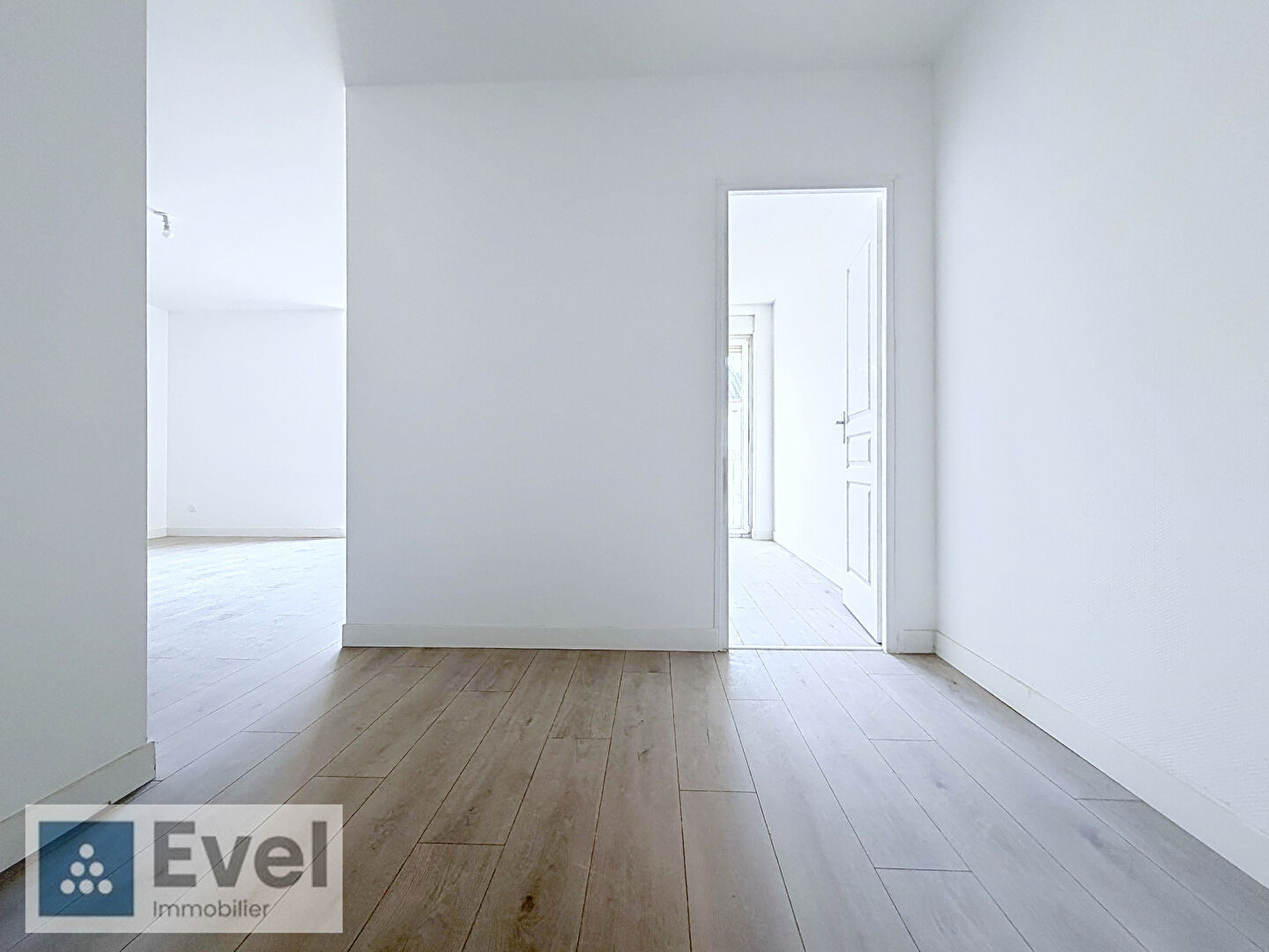Appartement de type F3 entièrement rénové, situé au 1er étage, comprenant une entrée, une cuisine équipée (four, plaque de cuisson, hotte) ouverte sur le séjour avec accès à un balcon, deux chambres, une salle d'eau avec wc, un débarras.