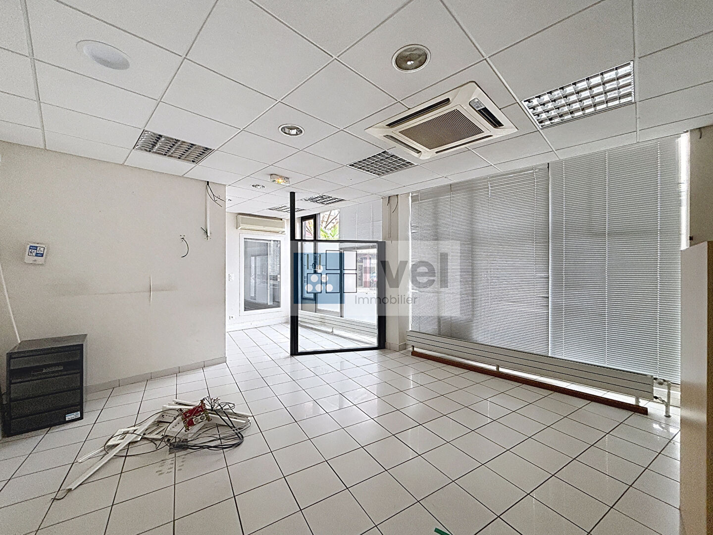 Le bien dispose d'une entrée commerciale ainsi que de deux entrées privatives, offrant une grande flexibilité pour un usage professionnel ou autres. Les locaux comprennent de grands espaces ouverts, des bureaux cloisonnés, une salle de réunion, des sanitaires et des celliers. Il est possible de diviser l'ensemble en plusieurs lots avec des entrées indépendantes.
