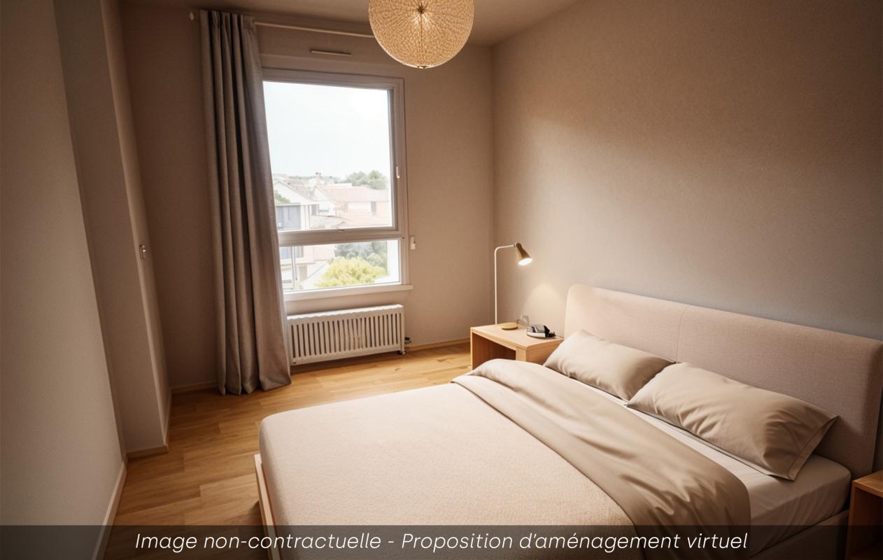 Il se compose d'une entrée avec placard, d'un séjour ouvrant sur un balcon, d'une cuisine pouvant être ouverte sur le séjour, de deux chambres de 10m² et 15m², d'une salle de bains et d'un WC indépendant.