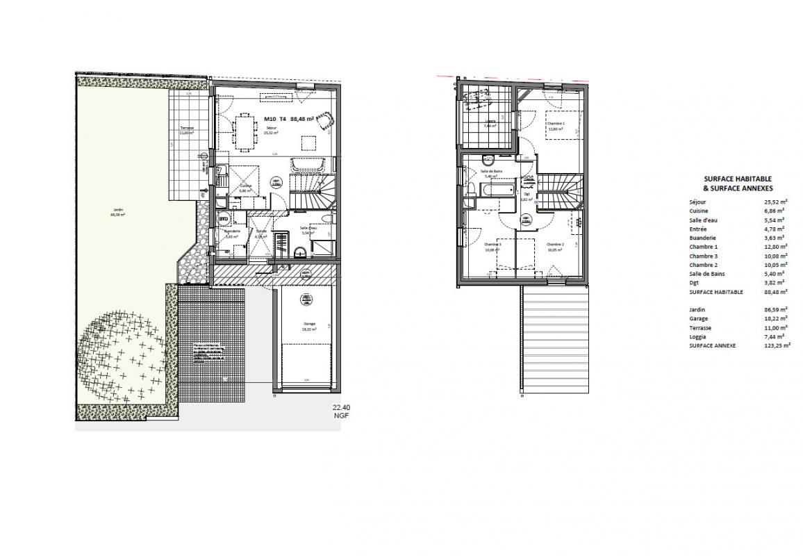 *LOGEMENT : Maison de 4 pièces de 88.59 m² dont 3 chambres de 12.80m², 10.08m² et 10.05m². Répartie sur deux niveaux, elle profite d'un séjour lumineux de 25,52m² avec cuisine ouverte donnant sur un jardin avec terrasse. Cette maison dispose d'un garage fermé et d'une place de parking.