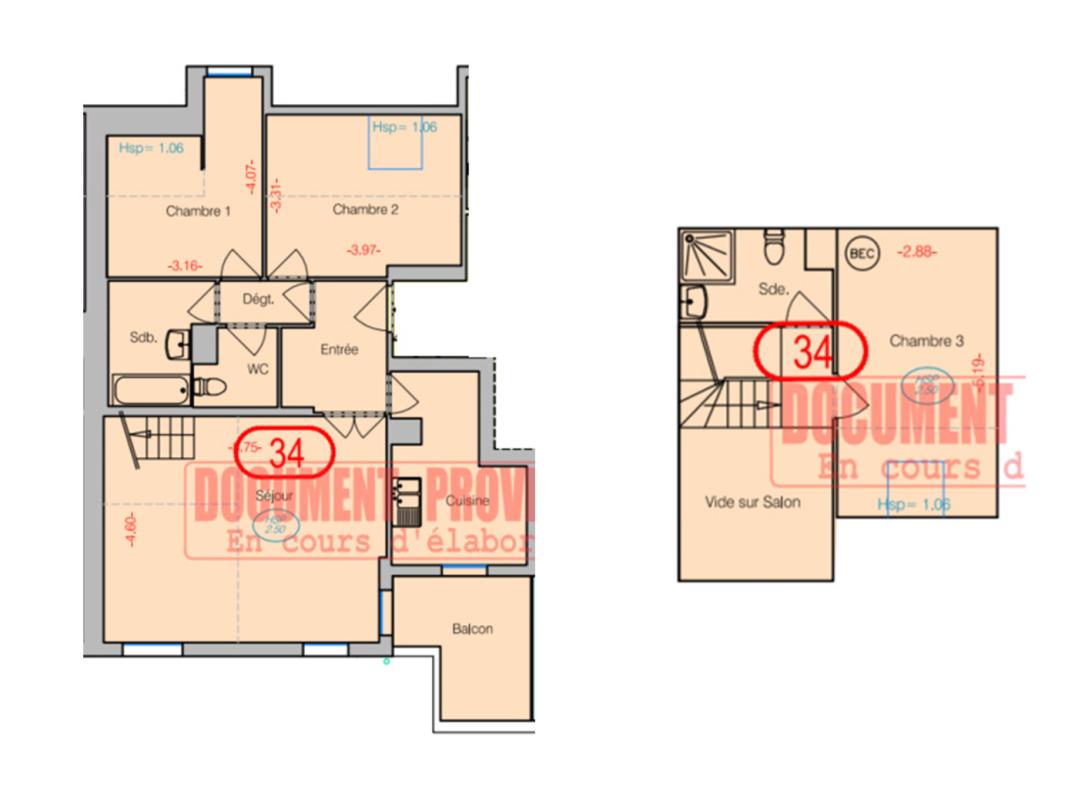 Il se compose d'une entrée avec placard, une cuisine fermée, un séjour sans vis-à-vis avec sa terrasse exposée Sud-Ouest et son séjour cathédrale, 2 chambres, une salle de bains, un WC séparé. A l'étage une chambre avec placard, une salle d'eau avec WC.
