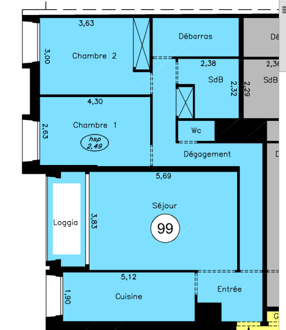 Venez découvrir cet appartement, qui se compose d'une entrée menant au salon/séjour lumineux, d'une loggia, d'une cuisine indépendante avec possibilité de l'ouvrir, deux chambres, un grand dressing à aménager, une salle de bains ainsi qu'un WC indépendant.