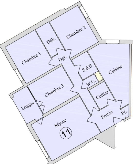 Il se compose d'une entrée avec placard, une grande cuisine dinatoire, un cellier, un séjour avec accès balcon exposé Nord-Ouest, une grande chambre avec accès au balcon, deux chambres, un espace dressing, une salle de bain, un WC séparé.