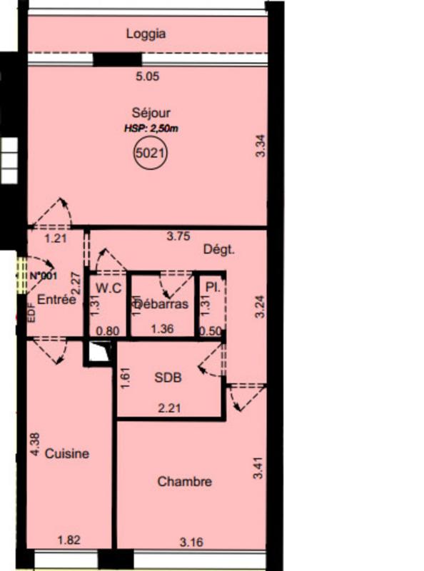 Il se compose d'une entrée, d'un séjour ouvrant sur un balcon de 3,90 m², d'une cuisine séparée avec cellier, une chambre, d'une salle de bains et d'un WC séparé. Chauffage collectif